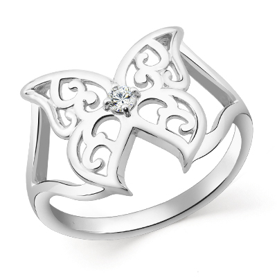 Кольцо с фианитом родированное серебро 925*