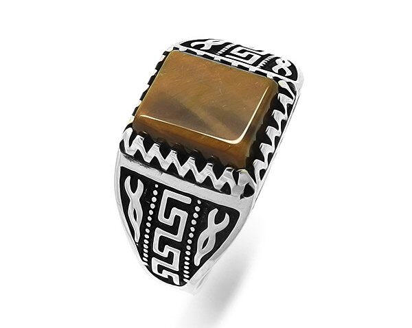 Мужское кольцо из серебра тигровый глаз, ТМК-26