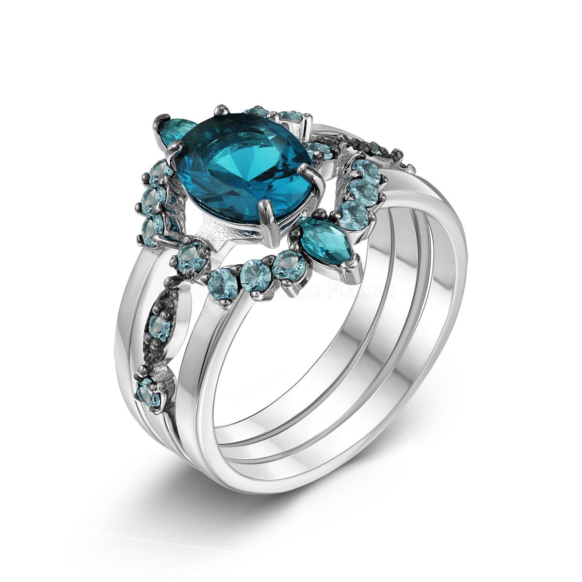 Кольцо тройное из серебра с пл. кварцем цв. лондон-топаз и фианитами родированное 925 пробы 1-244чр111
