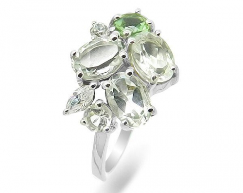 Кольцо из серебра зеленый аметист, Севиль