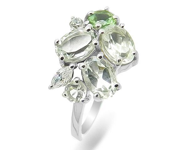 Кольцо из серебра зеленый аметист, султанит, Нола
