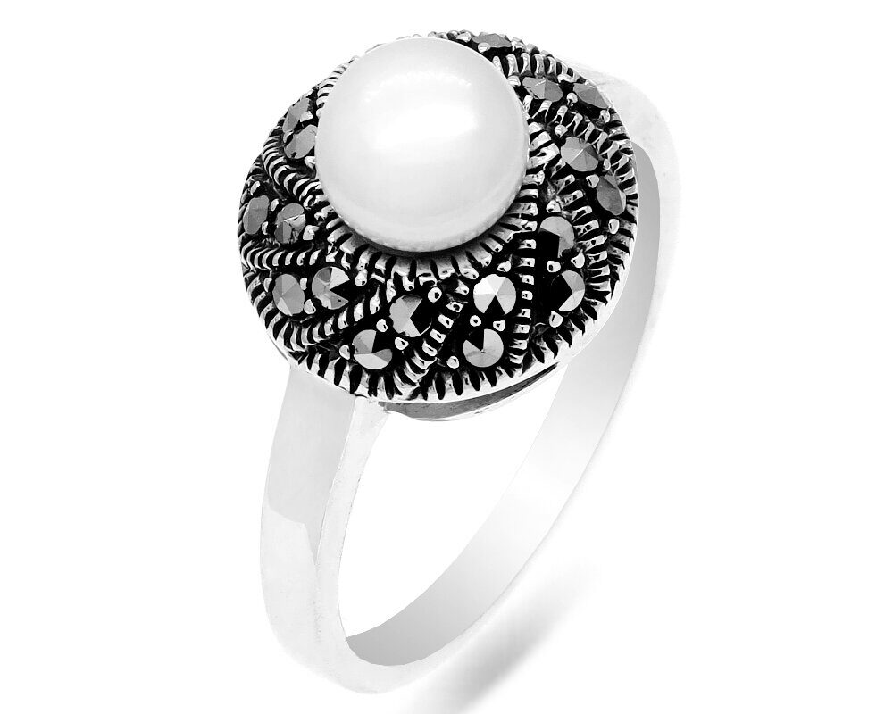 Кольцо из серебра жемчуг, марказит, SL-AGA1652