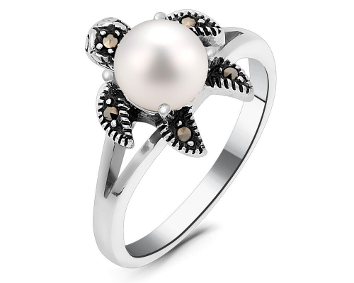 Кольцо, арт.656435 Серебро Серебро 875, р. 18, 3,96 гр., жемчуг , марказит