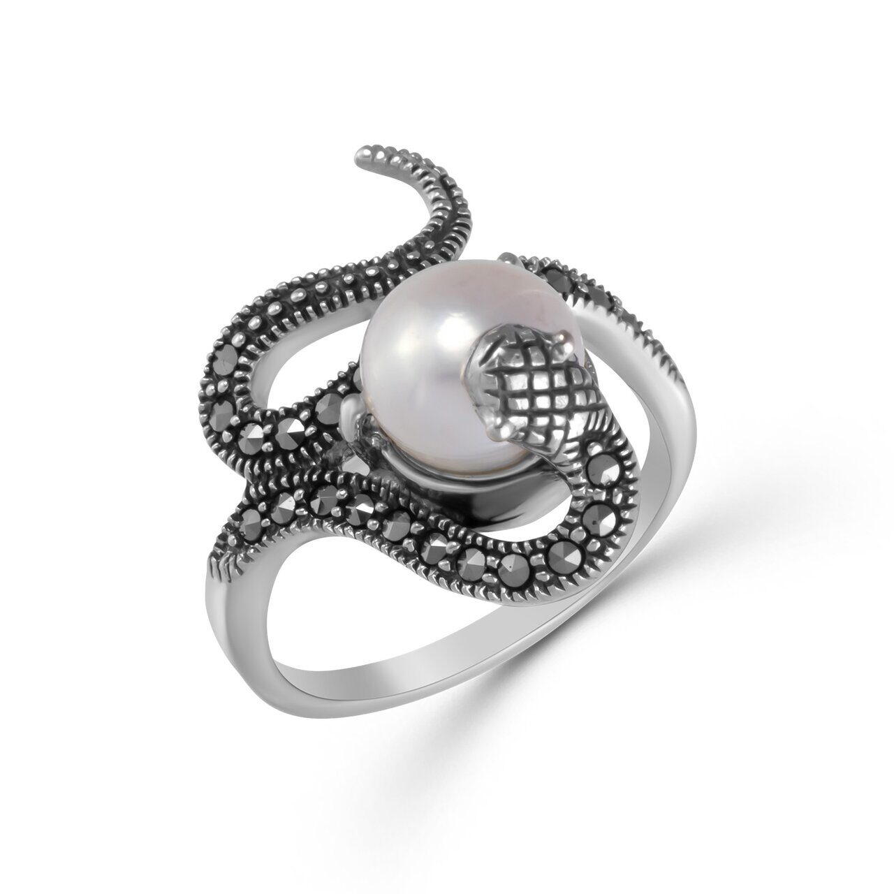 Кольцо, арт.654830 Серебро Серебро 925, р. 17, 5,33 гр., жемчуг , марказит