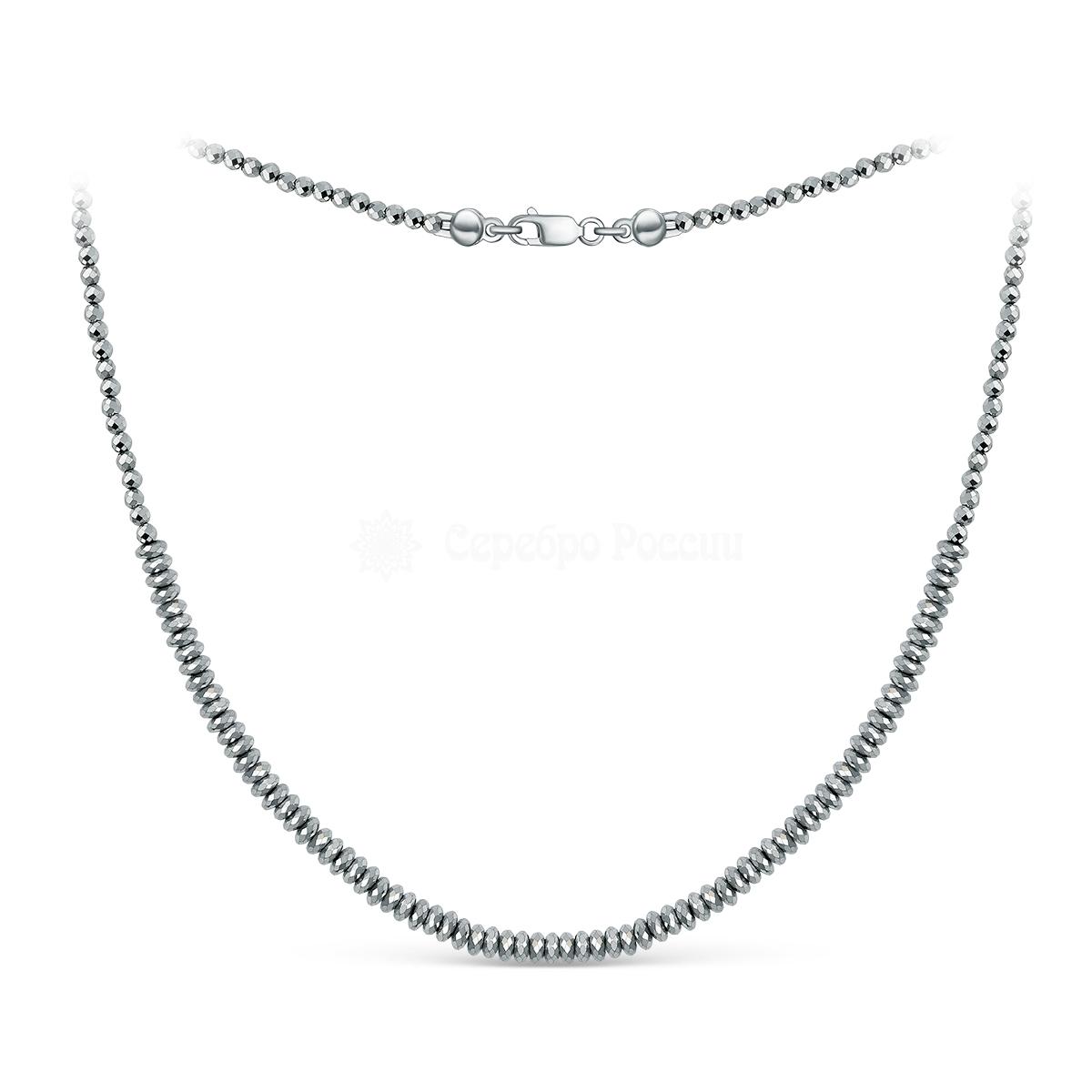 Колье из серебра с гематитом и марказитами родированное К 603 Мг