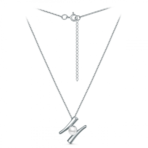 Колье из серебра с культивированным жемчугом и фианитами родированное 241-10-331р