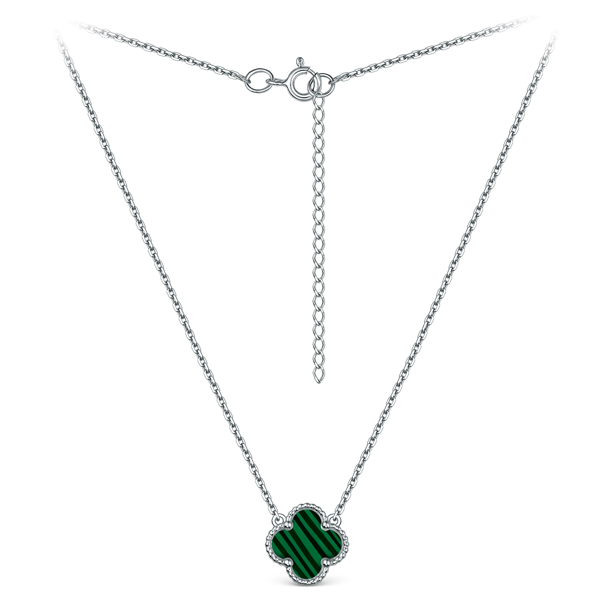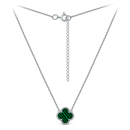 Колье из серебра с малахитом родированное - Клевер, четырёхлистник 241-10-149-3р
