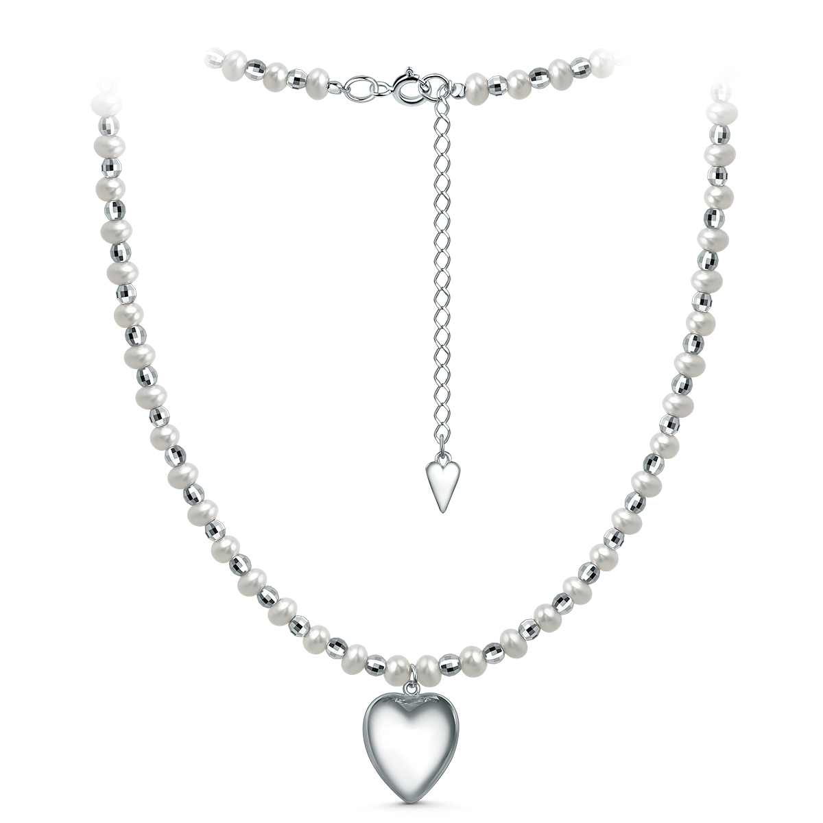 Колье из серебра с пресноводным культивированным жемчугом родированное - Сердце, 38 см (+5) 241-10-293-38р