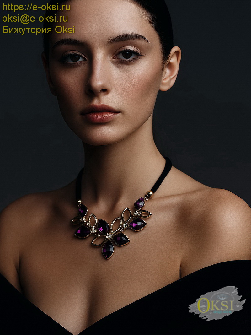 Очаровательное колье с крупными сверкающими кристаллами фиолетового оттенка. Фиолетовый ( фиалковый ) цвет - цвет мистический. таинственный и загадочный. Благодаря высокой контрастности хорошо сочетается с яркими и пастельными оттенками. Безупречно и стильно смотрится с белым и черным, золотым и серебряным. Очень красивое сочетание с желтым, зеленым и розовым цветом одежды и аксессуаров. Колье длиной 45 см, на бархатных шнурках