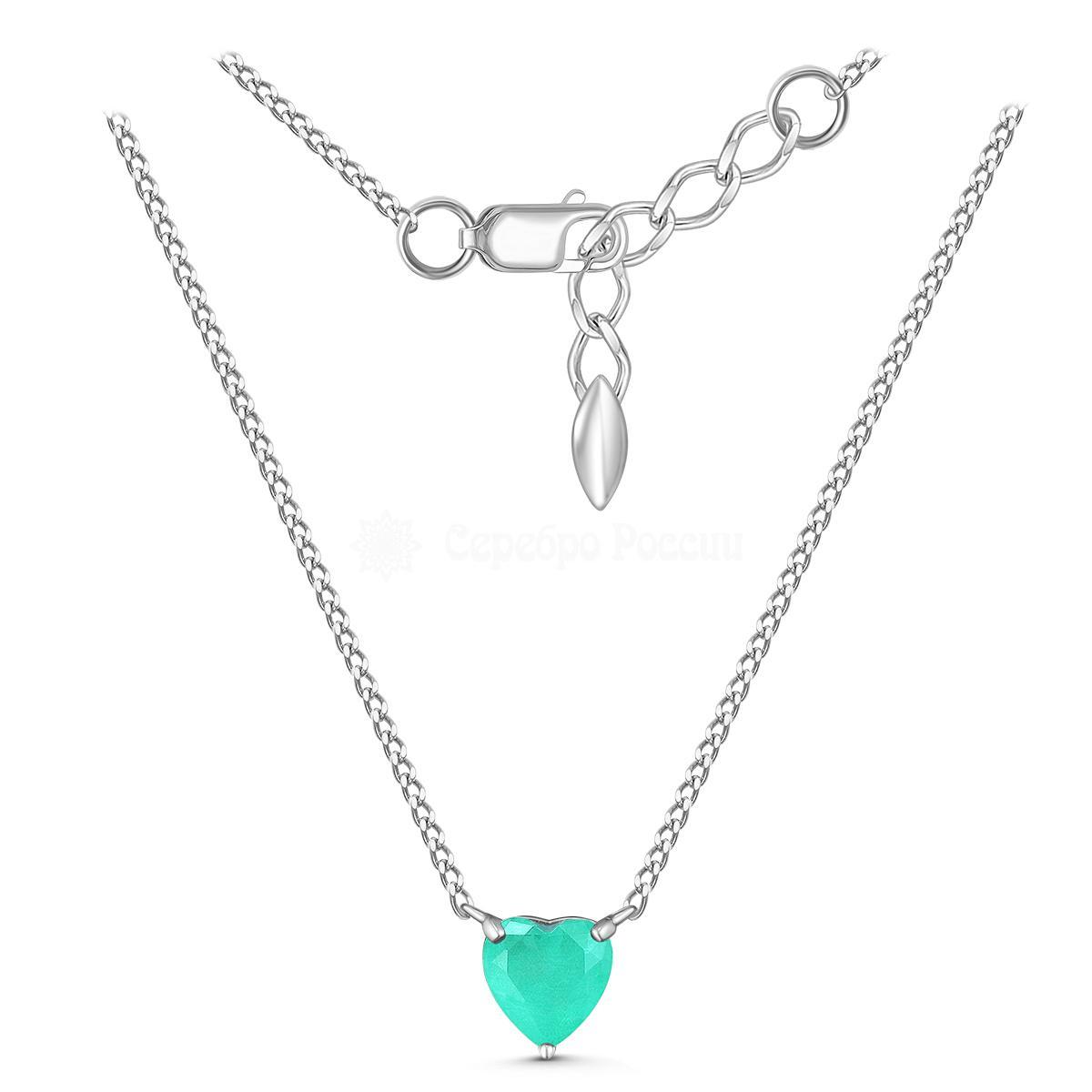 Колье Сердце из серебра с дуплетом горный хрусталь/кварц синтетический цвета парайба - удлинитель 5 см Кц-3932рс4135