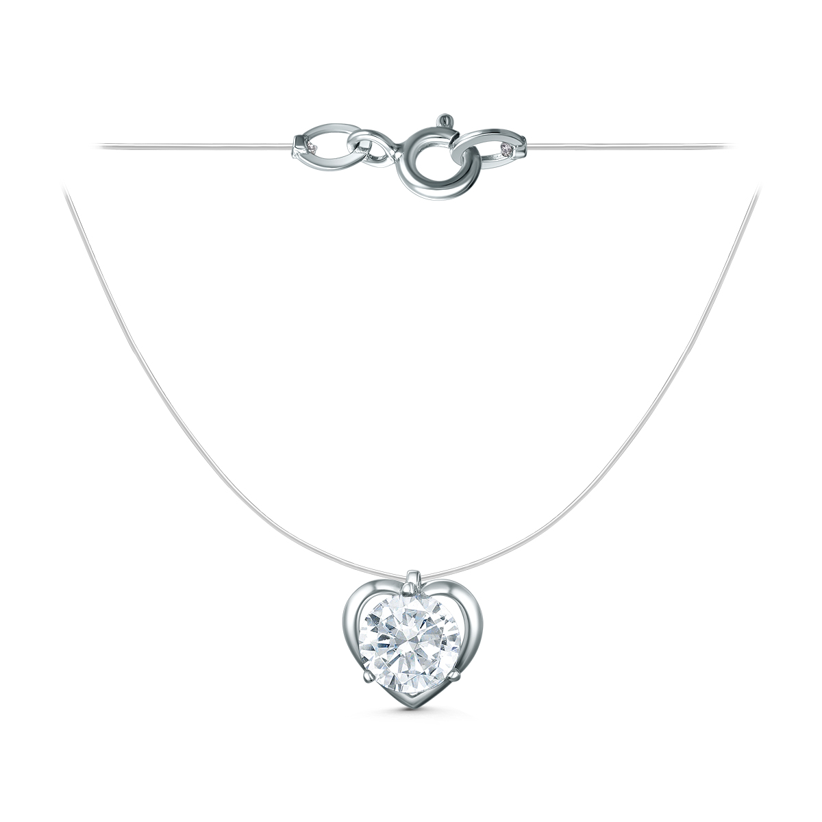 Колье сердце на леске из серебра с фианитом родированное 6102003