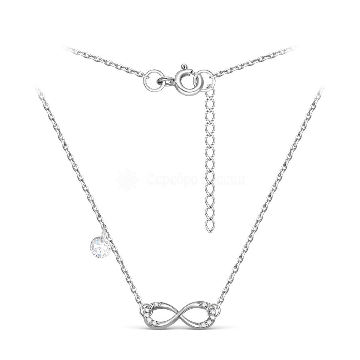 Колье женское Бесконечность из серебра с фианитами родированное - Удлинитель 5 см 441-10-635р