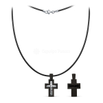 Крест из дерева граб на вощёном шнурке с элементом из чернёного серебра и родированием- Распятие 2,8 см ГК-018