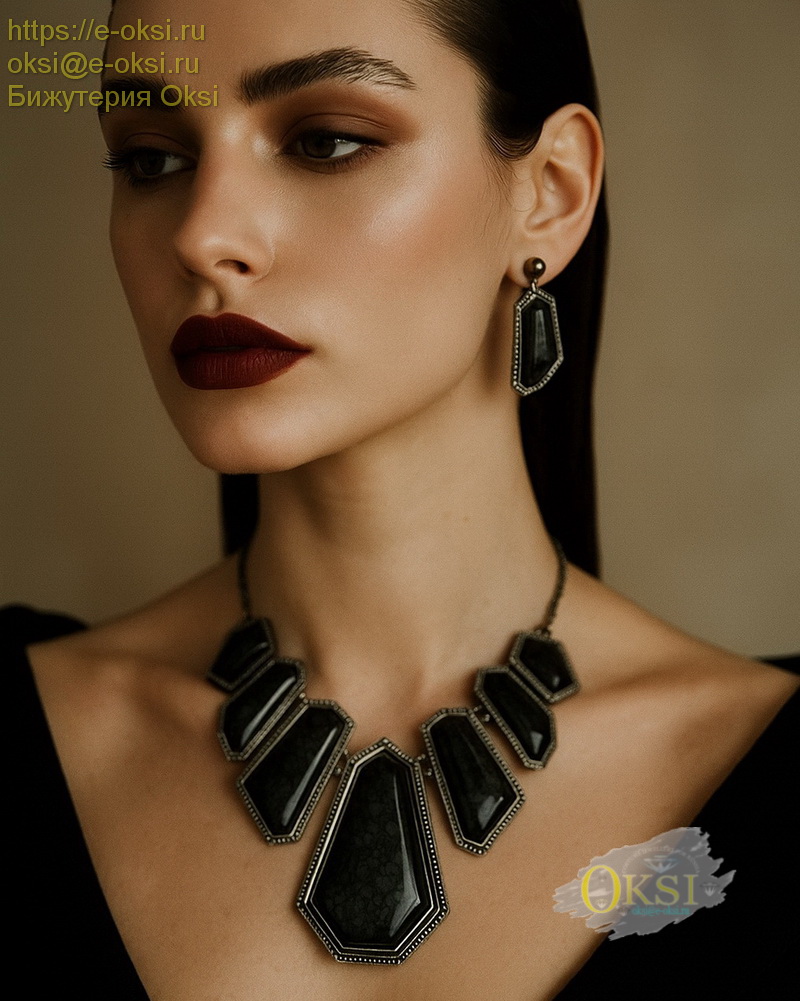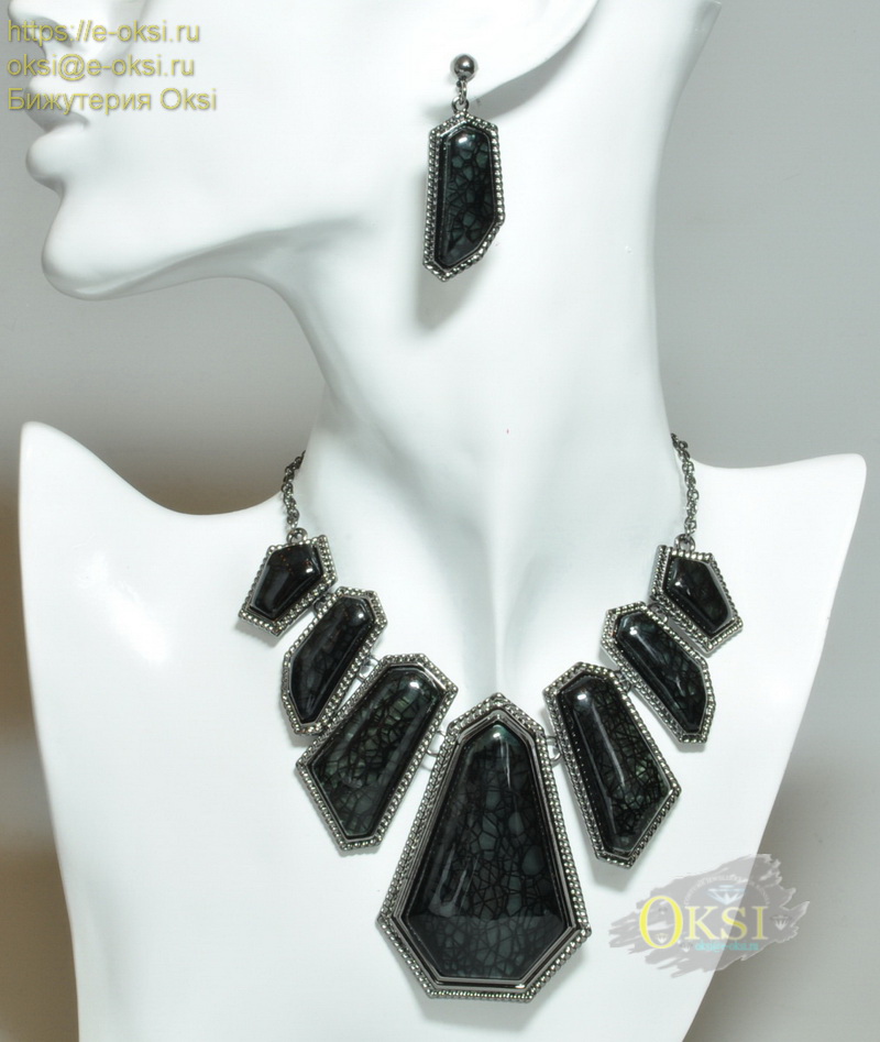 Роскошный комплект с синтетическими вставками мерцающего темно - серого цвета '' маренго''. Серый цвет - цвет элегантности и стиля, спокойствия и стабильности. Серый цвет - цвет универсальный и нейтральный, сочетается с любыми оттенками одежды. Серый идет абсолютно всем, главное - сыграть на контрасте. Длина колье 45 см. Серьги размером 5 см х 1,7 см. Качественное родиевого покрытие серебряного цвета..