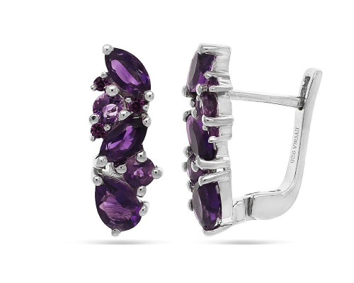 Серьги, арт.651192 Серебро Серебро 925, 3,38 гр., аметист , наноаметист