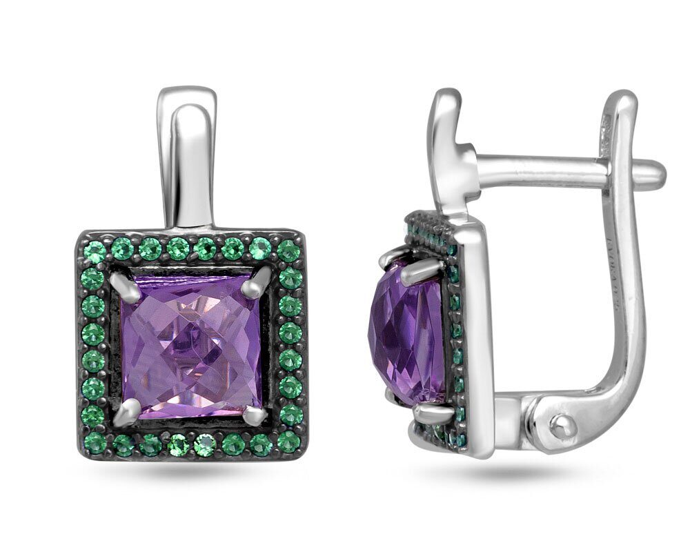 Серьги, арт.656873 Серебро Серебро 925, 4,51 гр., аметист , наноизумруд