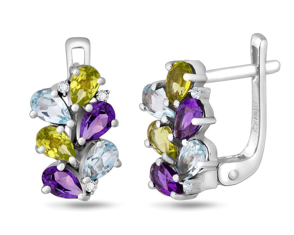 Серьги, арт.656864 Серебро Серебро 925, 3,87 гр., аметист , перидот , топаз