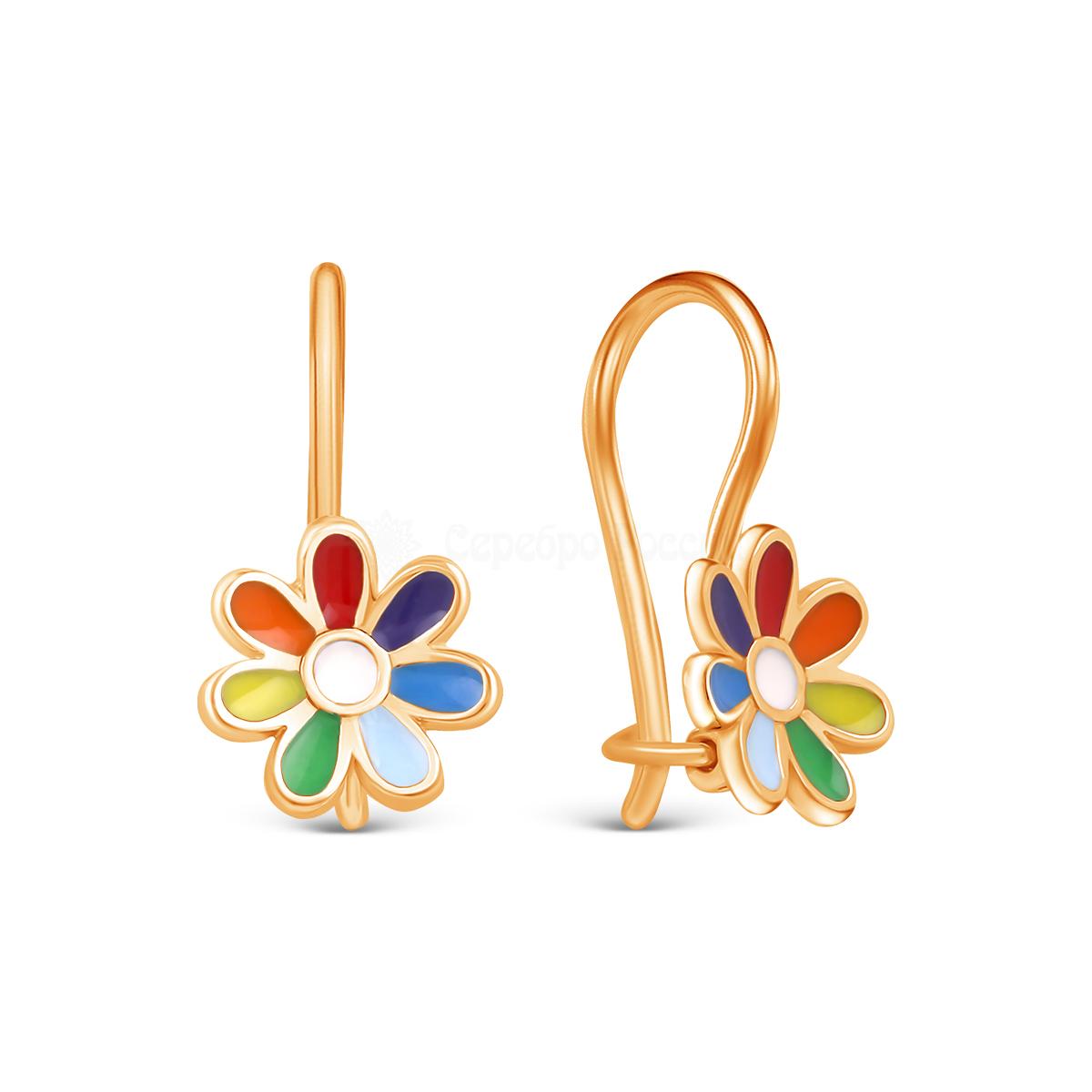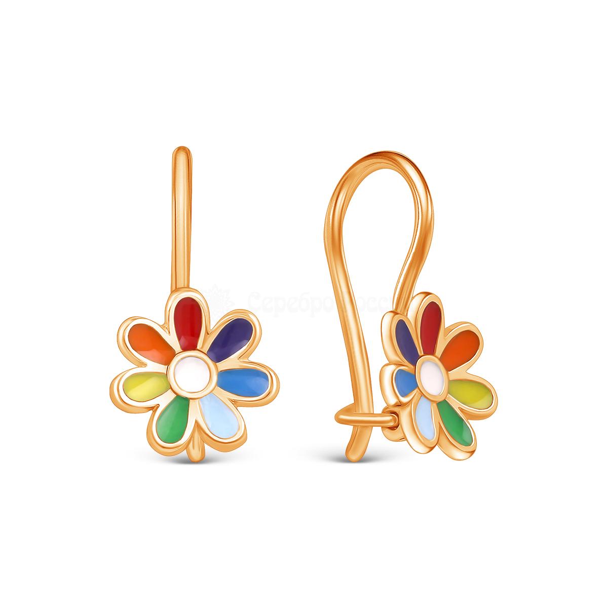 Серьги детские из золочёного серебра с эмалью - Семицветики 925 пробы 2110041з