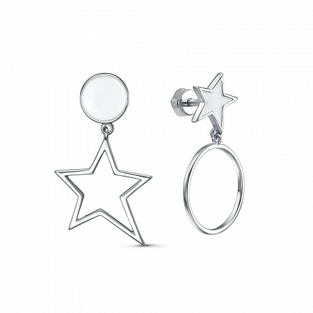 Серьги эмаль белая родированные серебро 925*