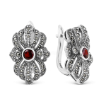 Серьги из чернёного серебра с нат. розовым перламутром и марказитами 925 пробы ME01237BK-MOP-V3