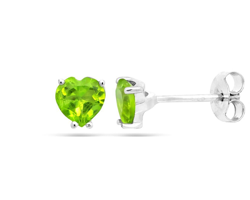 Серьги из серебра перидот, Сердце