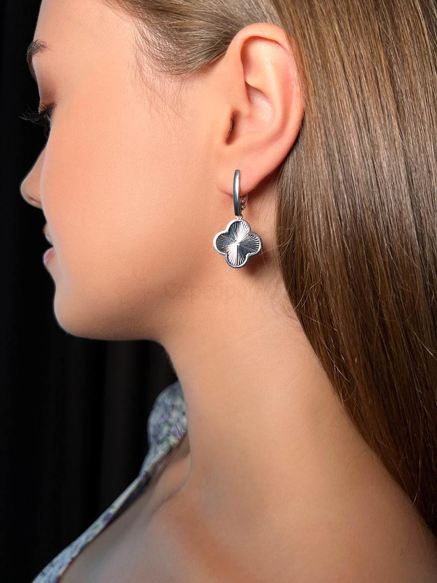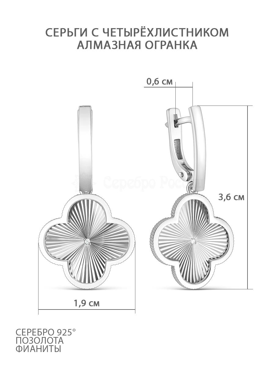 Серьги длинные серебро в форме клевер с фианитом родированное коллекция Wan clover 925 пробы 421-15-922р