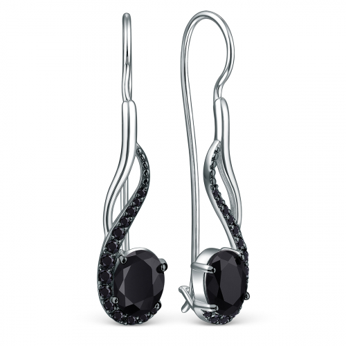 Серьги из серебра с чёрной шпинелью родированные - Пряжки 2-132рч416