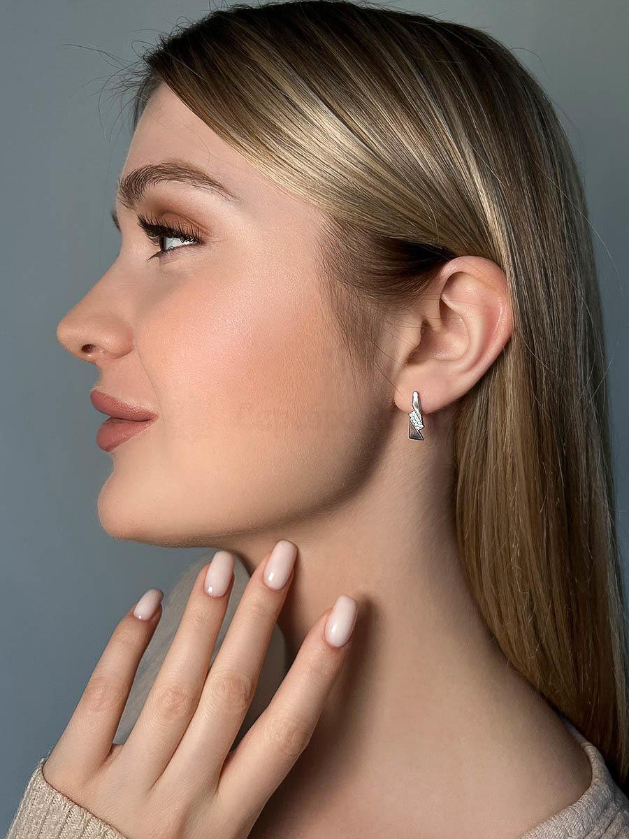Серьги из серебра с фианитами родированные 925 пробы С-7328р200