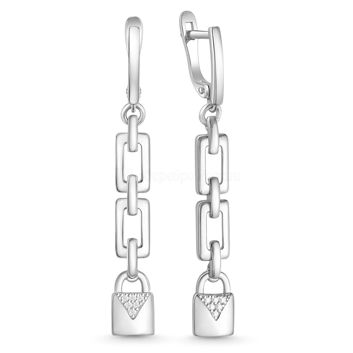 Серьги из серебра с фианитами родированные 925 пробы С-4315-Р