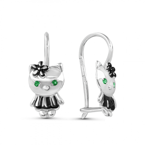 Серьги детские из серебра с фианитами родированные - Кошки 925 пробы 5032р232