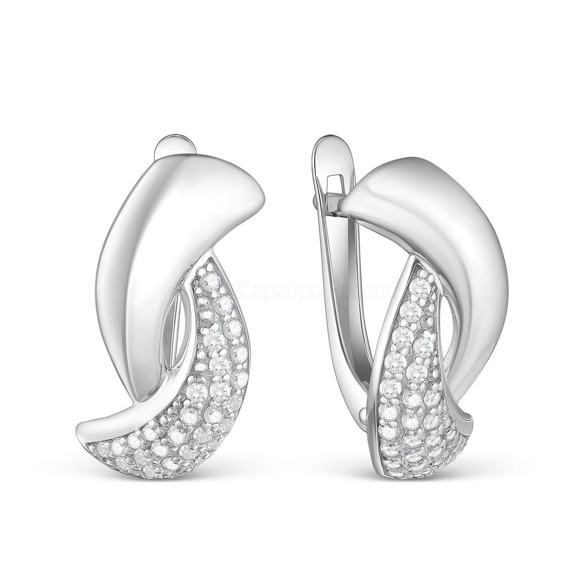 Серьги из серебра с фианитами родированные 925 пробы 11-1301