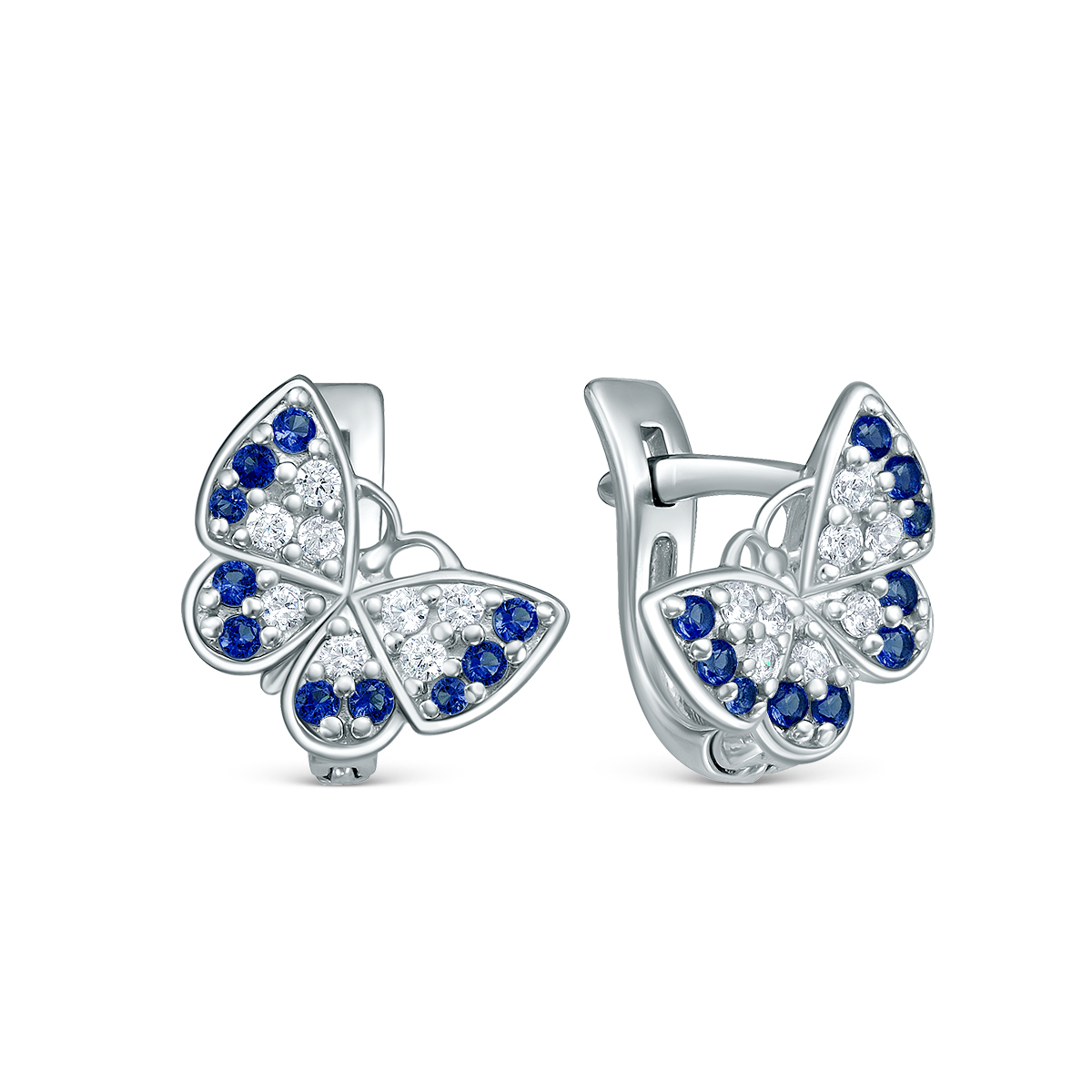 Серьги из серебра с фианитами родированные - Бабочки 1,2 см 925 пробы с2-086-4р208