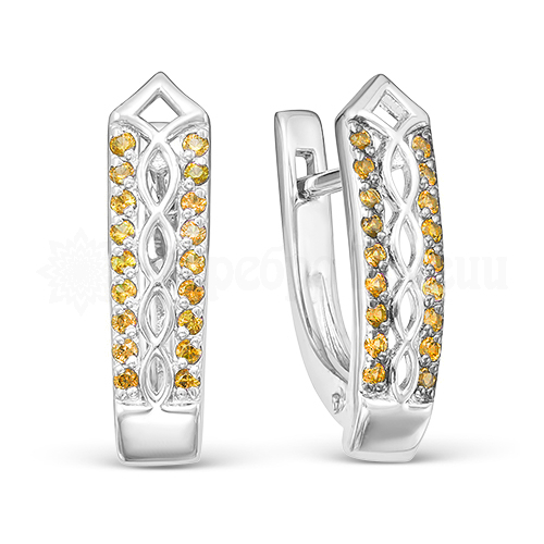 Серьги из серебра с фианитами шампань родированные 925 пробы 2-1044р-220