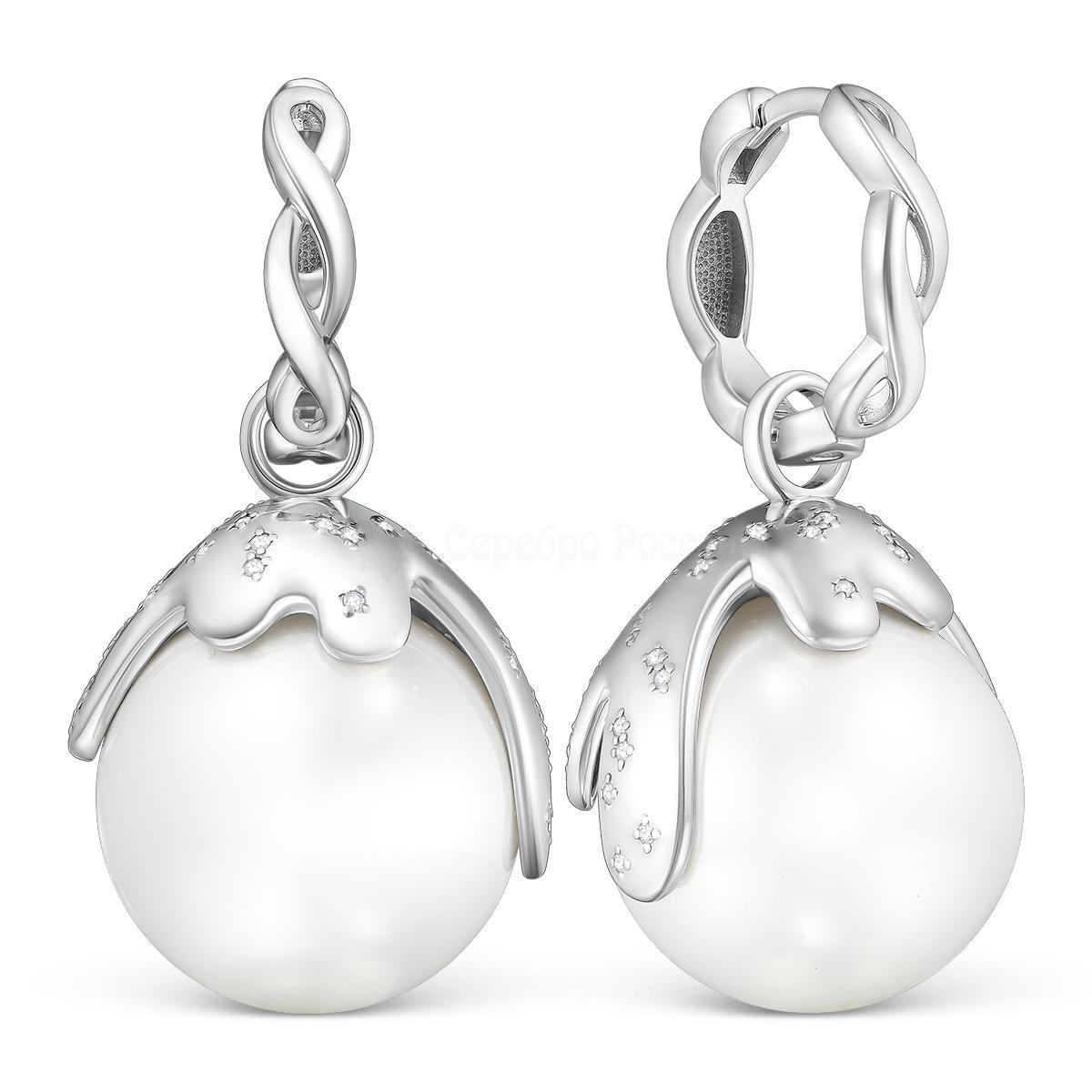 Серьги из серебра с имит. жемчугом и фианитами родированные (2 в 1) 925 пробы С-3942рж100100