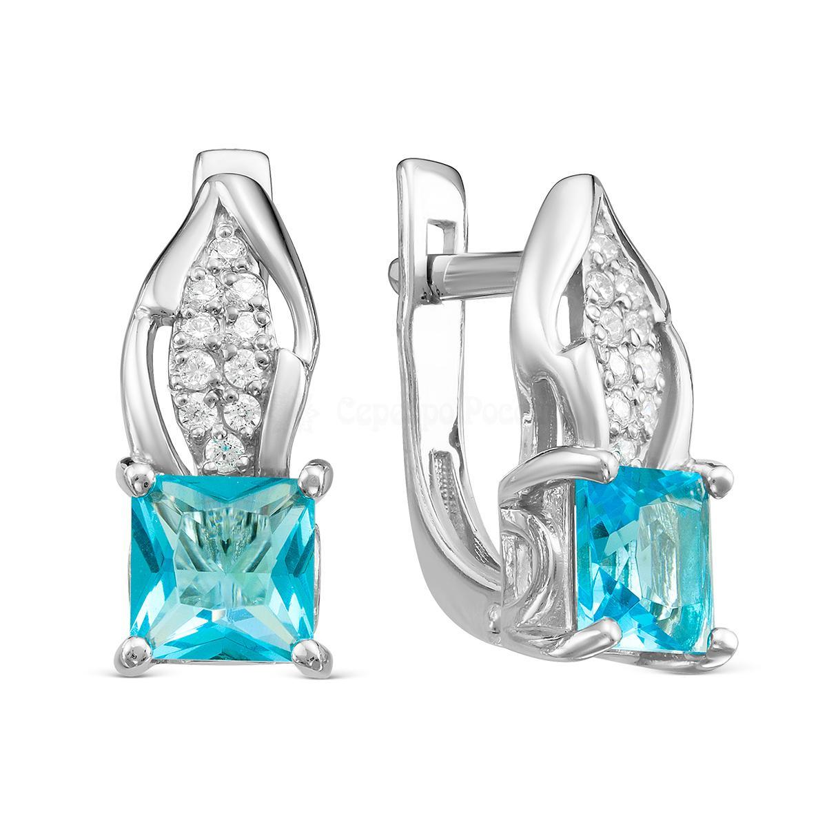 Серьги из серебра с пл.кварцем цв.swiss топаз и фианитами родированные 925 пробы С-3531рс10300