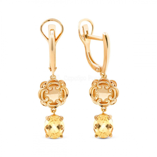 Серьги из золочёного серебра с нат.цитрином 925 пробы С-3669зс405