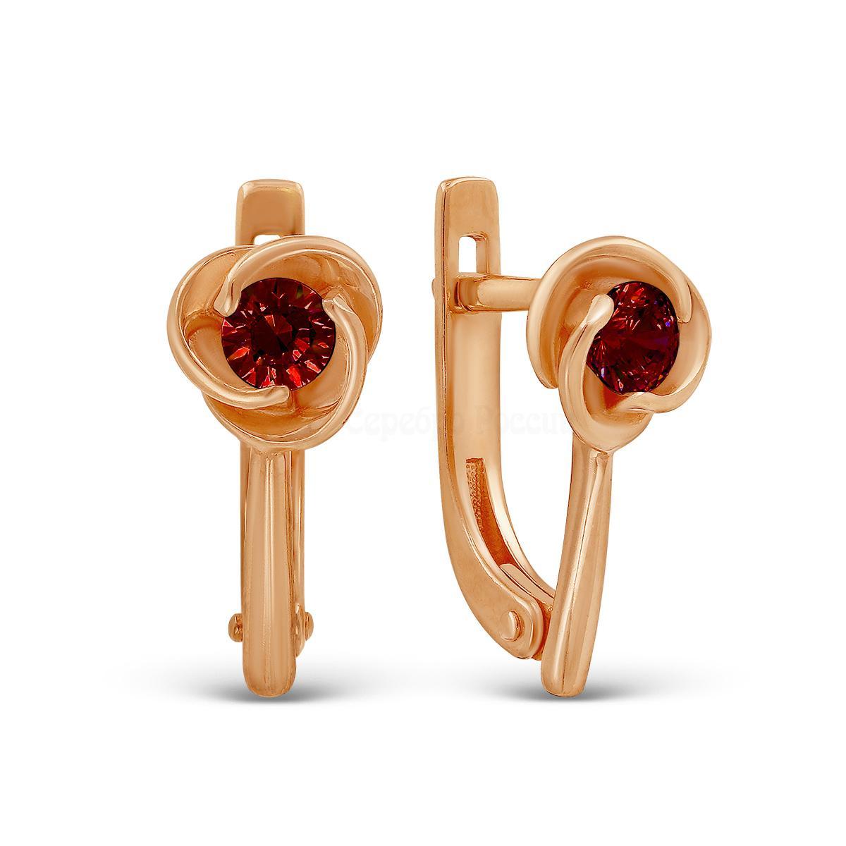 Серьги из золочёного серебра с нат. гранатом 925 пробы С-3684з404