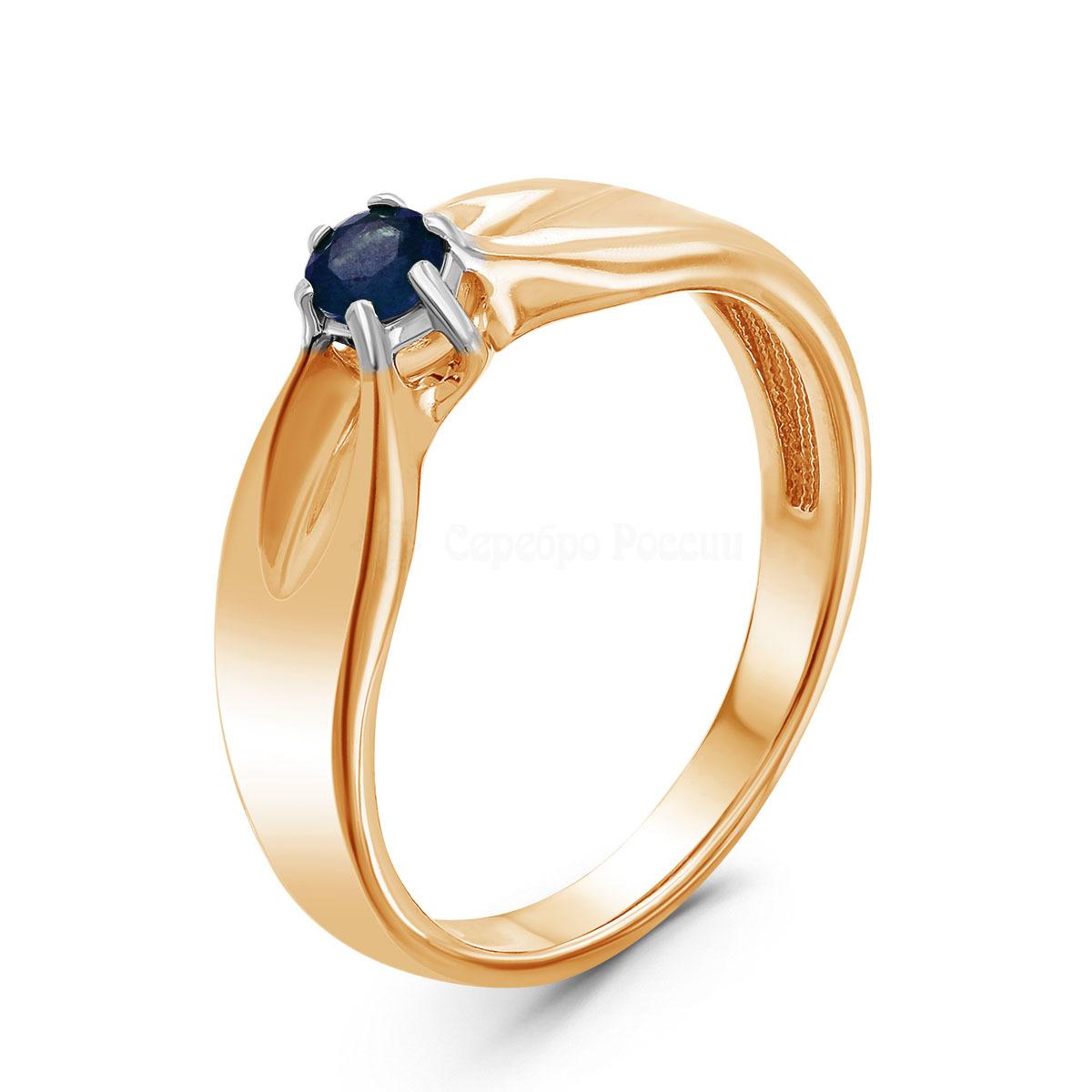 Кольцо из золочёного серебра с нат.сапфиром и родированием 925 пробы п1-552зр408
