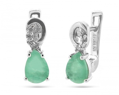 Серьги, арт.629988 Серебро Серебро 925, 2,7 гр., изумруд