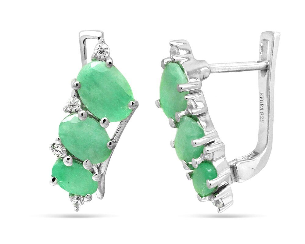 Серьги, арт.645269 Серебро Серебро 925, 3,33 гр., изумруд берилл