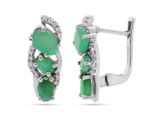 Серьги, арт.649908 Серебро Серебро 925, 3,54 гр., изумруд берилл