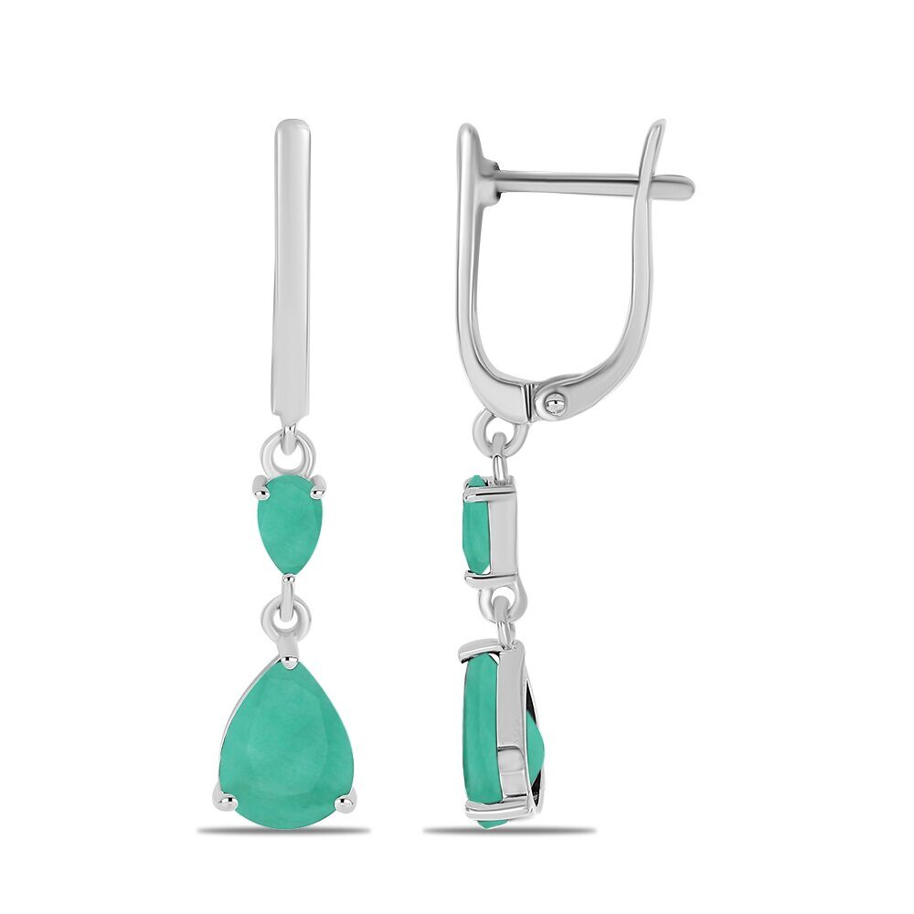Серьги, арт.657812 Серебро Серебро 925, 3,11 гр., изумруд берилл