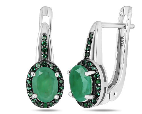 Серьги, арт.657660 Серебро Серебро 925, 2,87 гр., изумруд берилл , наноизумруд