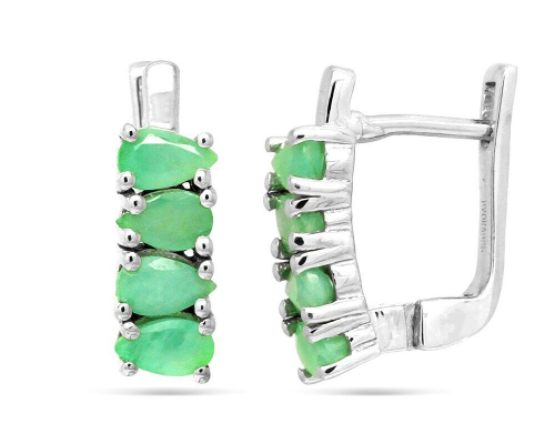 Серьги, арт.645535 Серебро Серебро 925, 3,72 гр., изумруд берилл