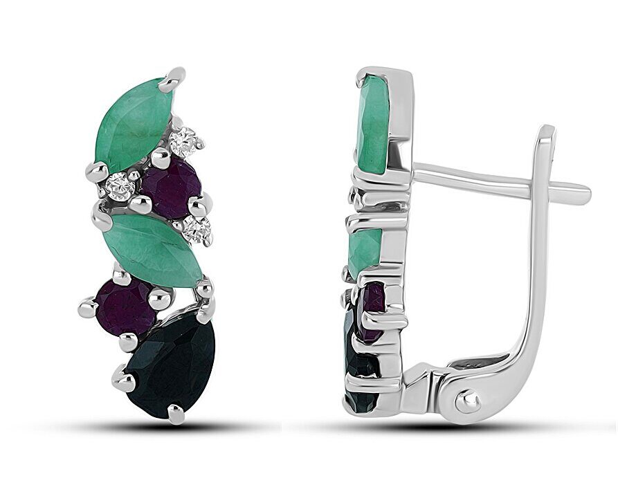 Серьги, арт.630032 Серебро Серебро 925, 3,5 гр., изумруд , рубин , сапфир