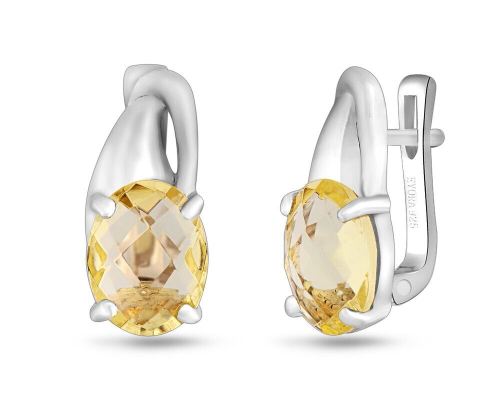 Серьги, арт.656138 Серебро Серебро 925, 6,02 гр., лимонный топаз