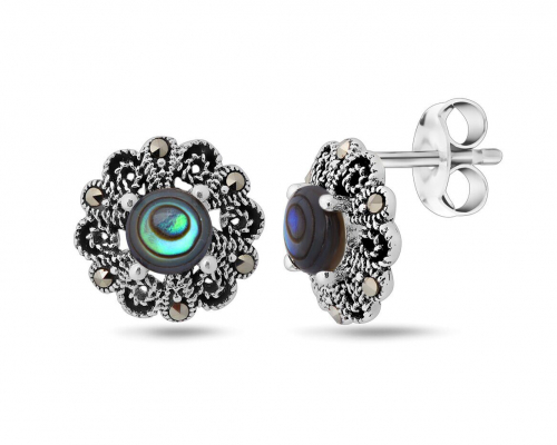Серьги, арт.656512 Серебро Серебро 925, 2,3 гр., марказит , перламутр зелёный