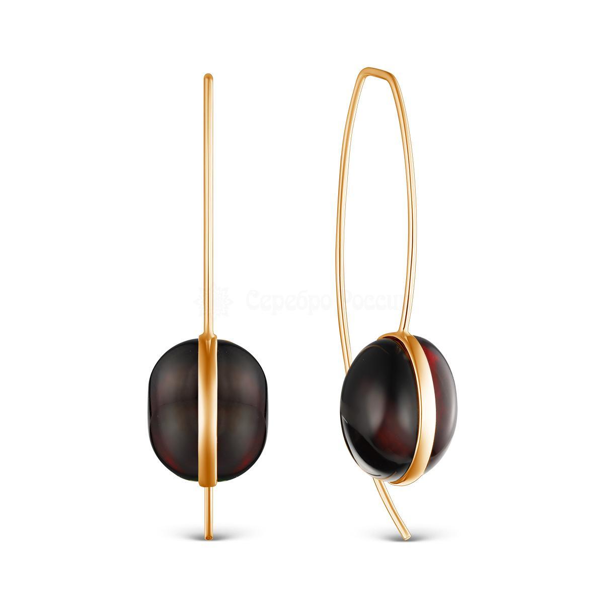 Серьги на петле из золочёного серебра с прессованным натуральным янтарём 925 пробы 2200166201