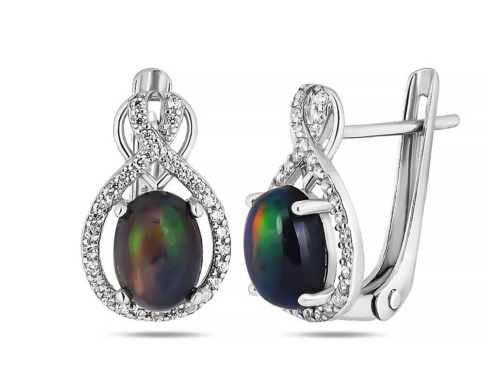 Серьги, арт.657653 Серебро Серебро 925, 2,64 гр., опал нат. черный