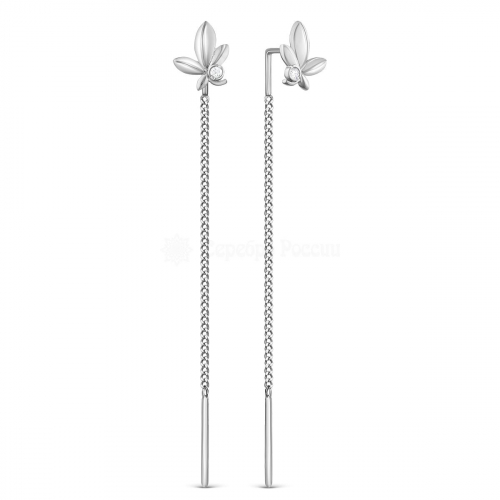 Серьги-продёвки из серебра с фианитами родированные 925 пробы с-0005р200